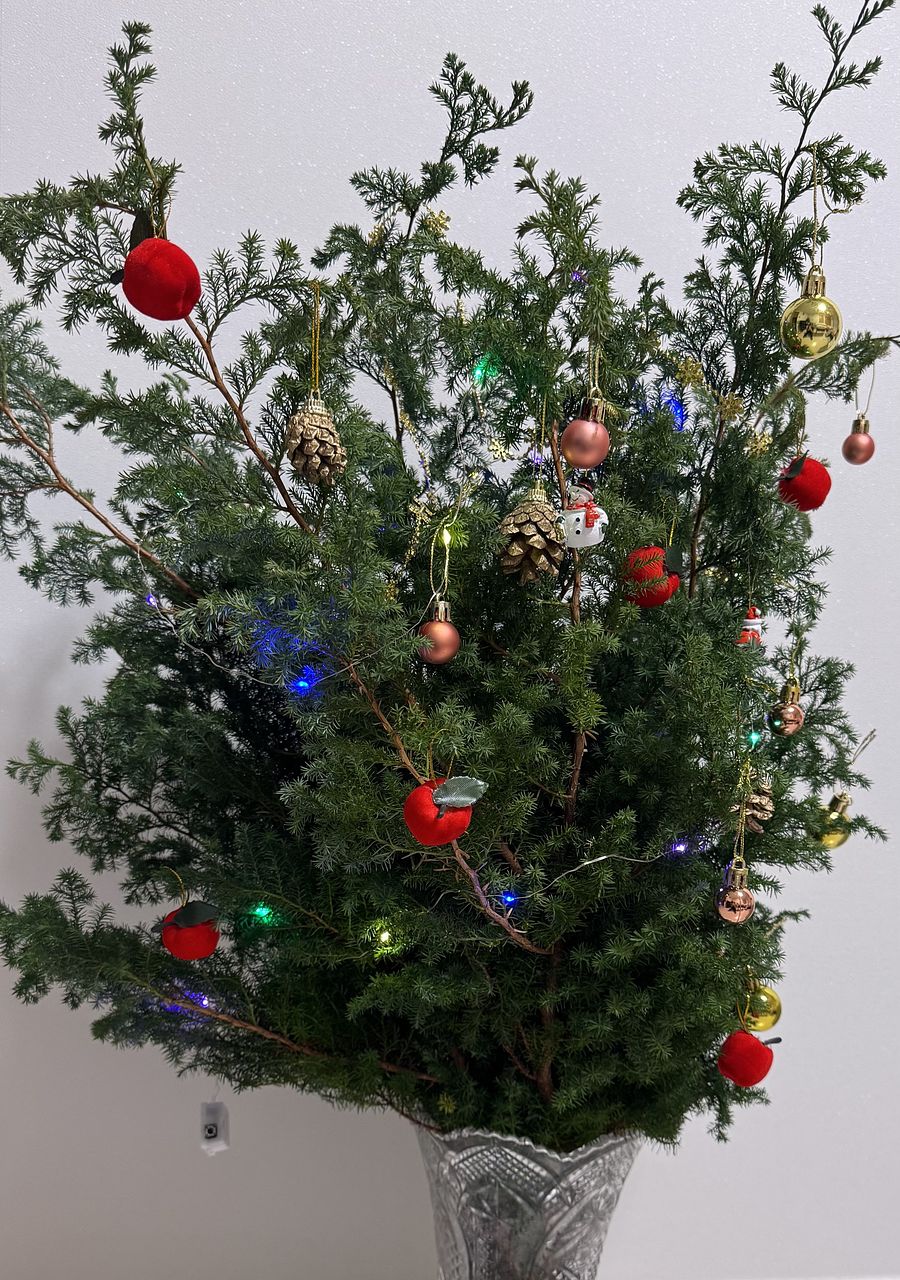 めちゃくちゃよかったです♡ 驚きのボリュームで、綺麗にバランスよくいけるのにかなり試行錯誤しましたが、オーナメントをつけてこんなに可愛くなりました!今年は赤ちゃんがいてツリーを飾れない(倒される😅)ので、花器に飾るクリスマスツリーでクリスマスのわくわく気分をもりあげていきたいと思います!!!