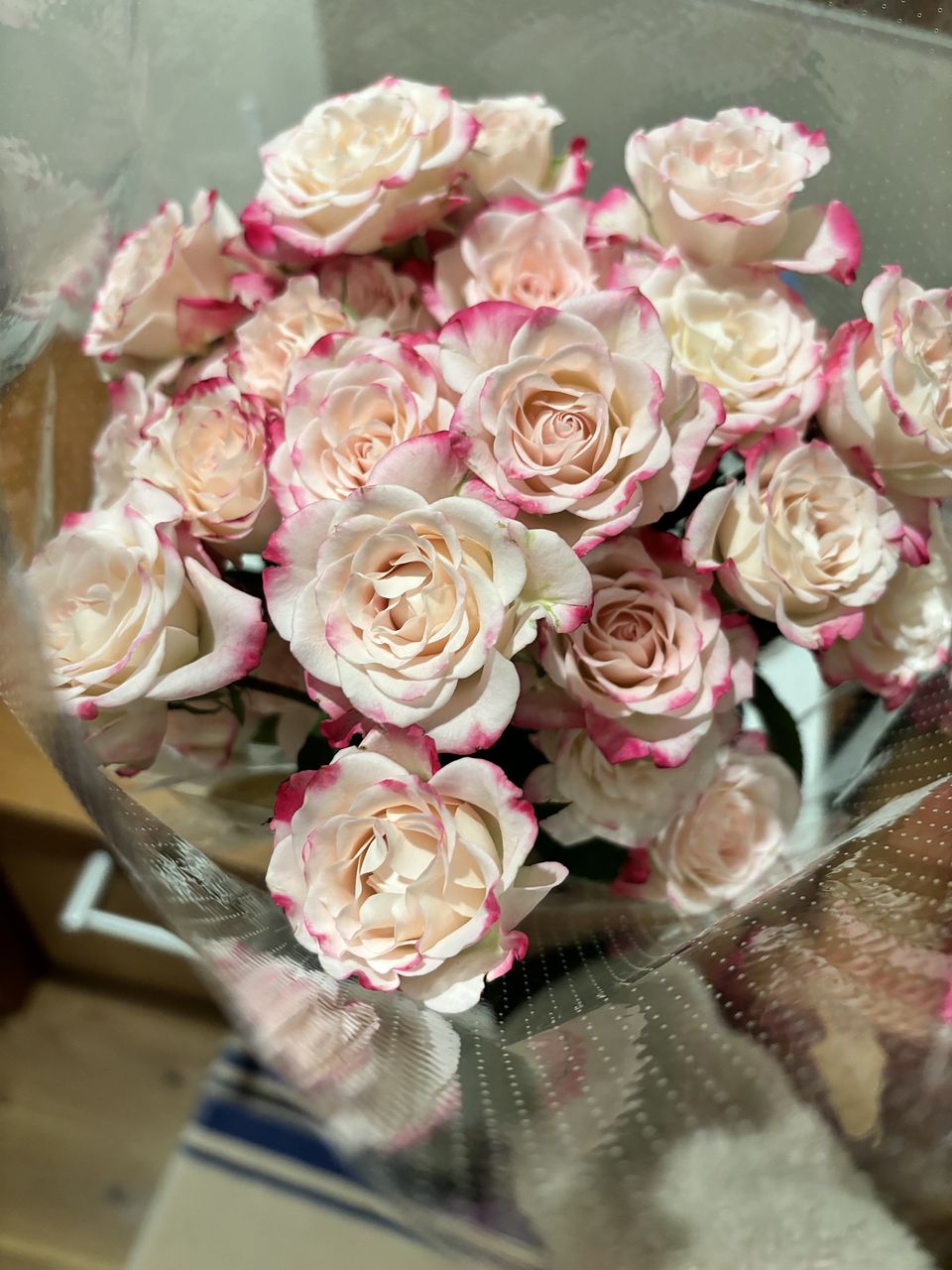 とても可愛い色のバラが届いて気持ちまで明るくなりました。♡ 少し飾ってからドライフラワーも楽しみたいと思います😊