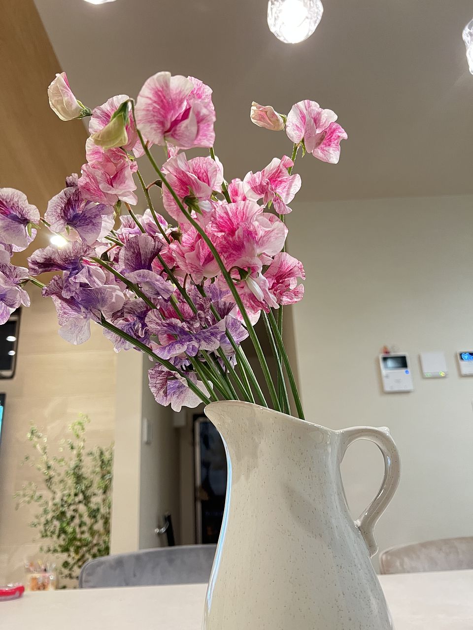 見た目もネーミングもかわいい💓スイートピー「恋かすみ」と「詩かすみ」をたっぷりと束ねました。フローリストのイチオシのスイートピーです🪸🍇
