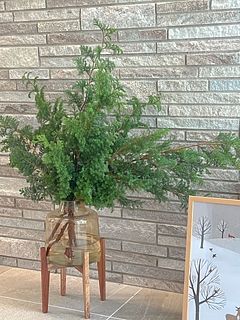 しなやかでふわふわとした枝ぶりで花瓶に入れた時に形も整いやすく生けやすかったです。緑色のモコモコした葉っぱがとても可愛い♡オーナメントをつけるのがとても楽しみです。