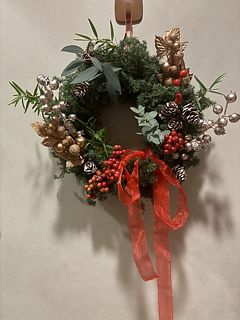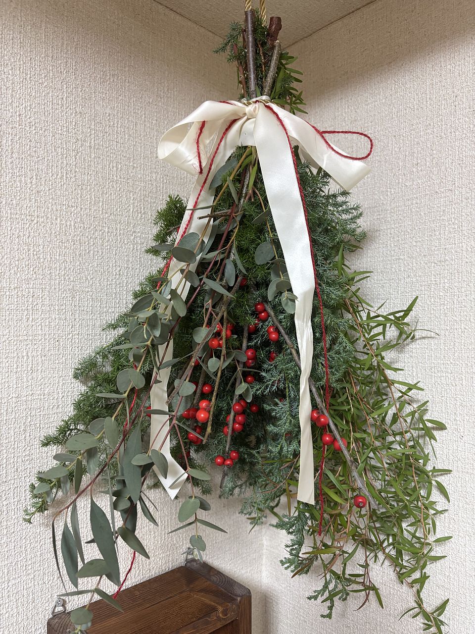 ティーツリー、ユーカリと好きな香りに癒されます。 玄関先に吊るし、クリスマス気分を味わっています😊