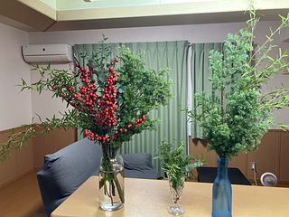 とっても素敵でした! 前回のもみの木でリースを作ったのでそちらにも少しグリーンを足しました♪