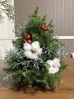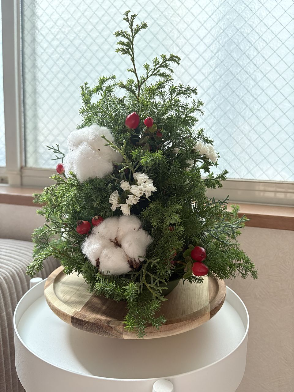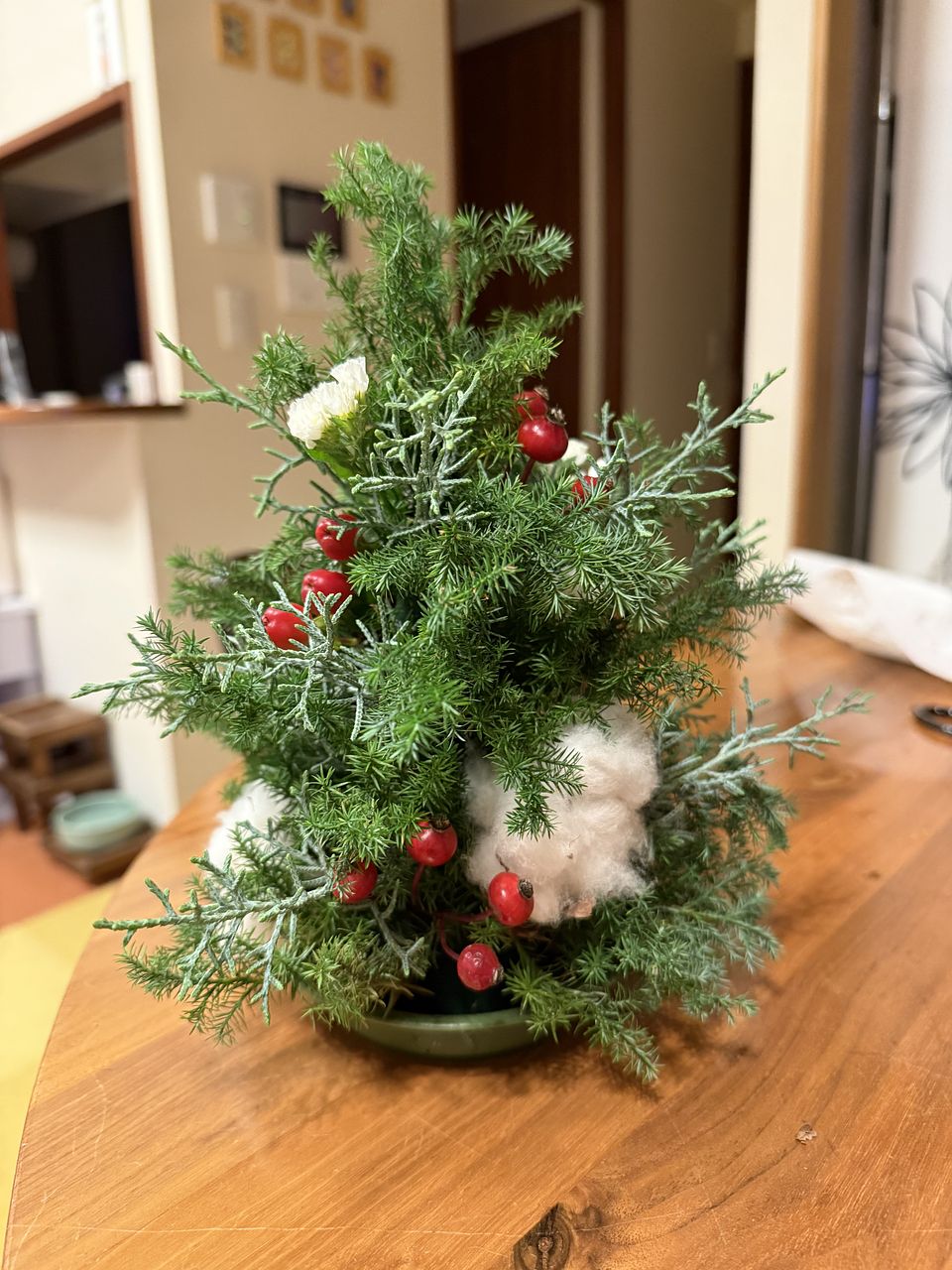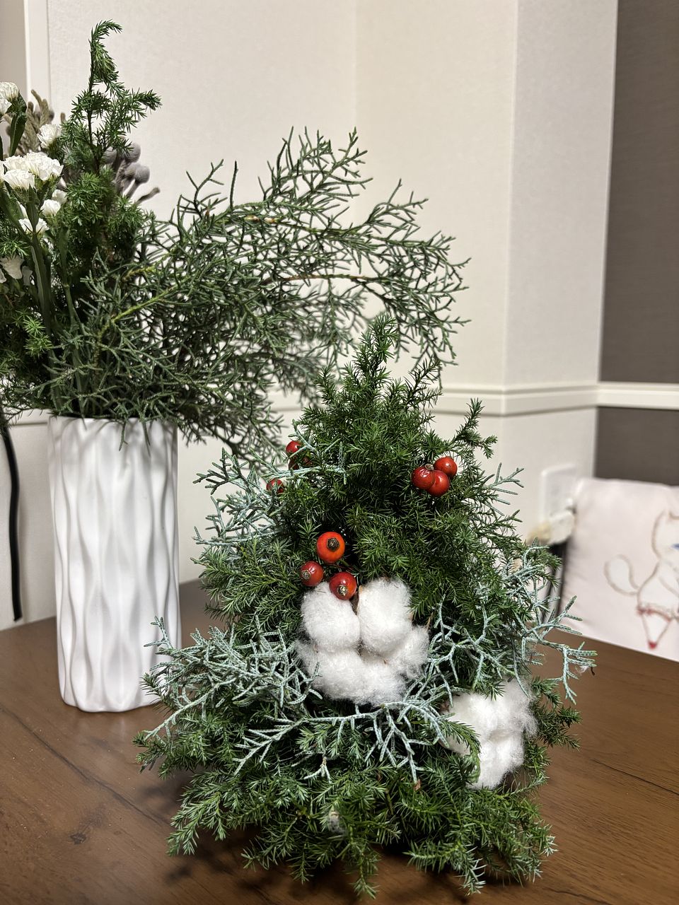 ヒバの香りがよくて楽しく作ることができました!アメリカウメモドキの赤味がもう少し強ければ良かったなと思いますが、かわいいツリーができて嬉しいです♡