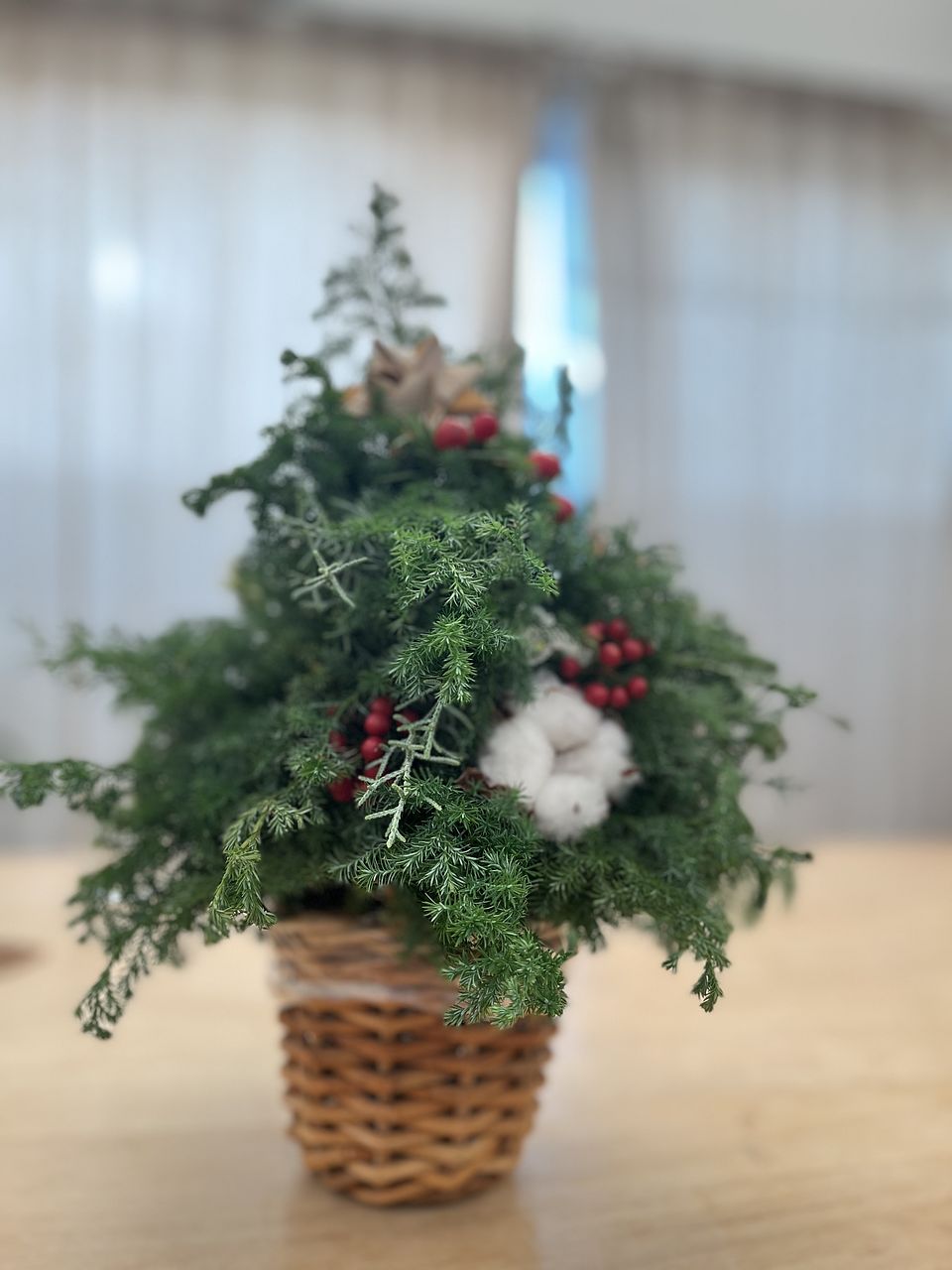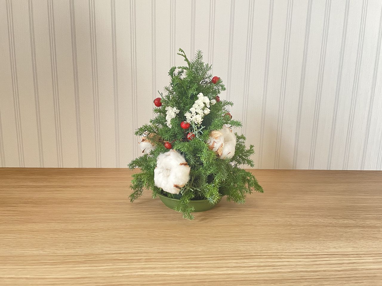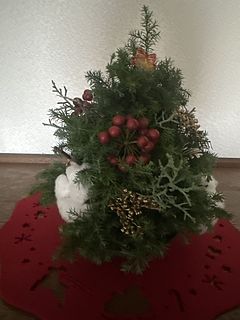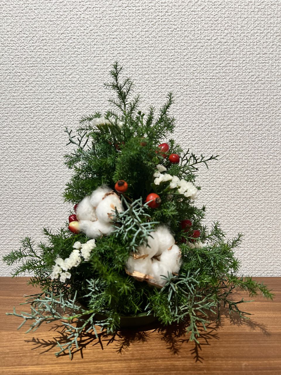 ヒバの香りがよくて楽しく作ることができました!アメリカウメモドキの赤味がもう少し強ければ良かったなと思いますが、かわいいツリーができて嬉しいです♡