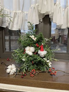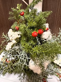 グリーンや赤い実は綺麗でしたが、目立つコットンが無くてガッカリでした。 白いスターチスでカバーしようと思いましたが、やはり大きくふわふわとしたコットンが無いとイメージがだいぶ変わってしまいました。 追記 本日、コットンだけがちゃんと届きました。 作った物にコットンをプラスして完成しました。