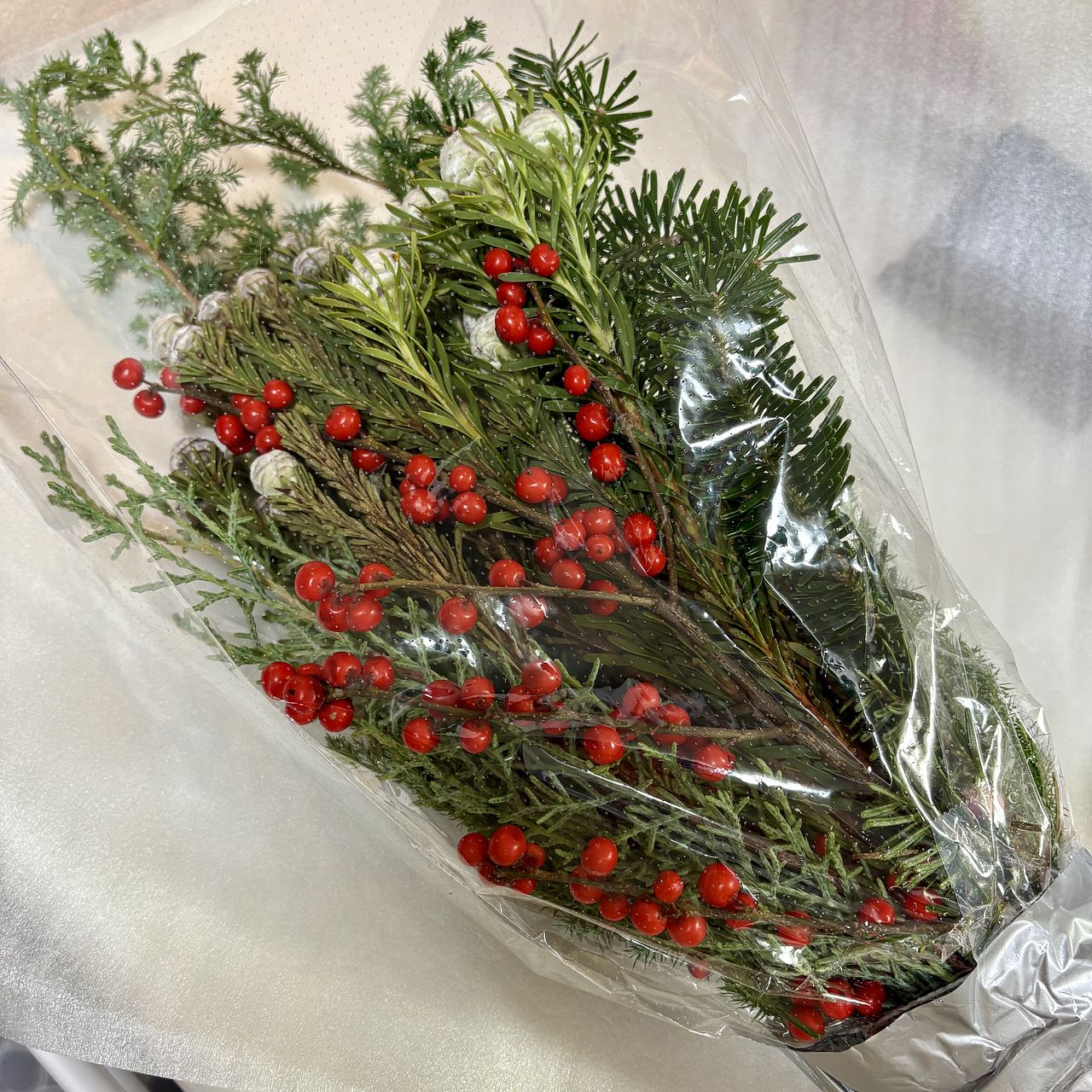 赤いウィンターベリーとグリーンのコントラストが美しい、キャンドル付きのリースキット🕯🍒