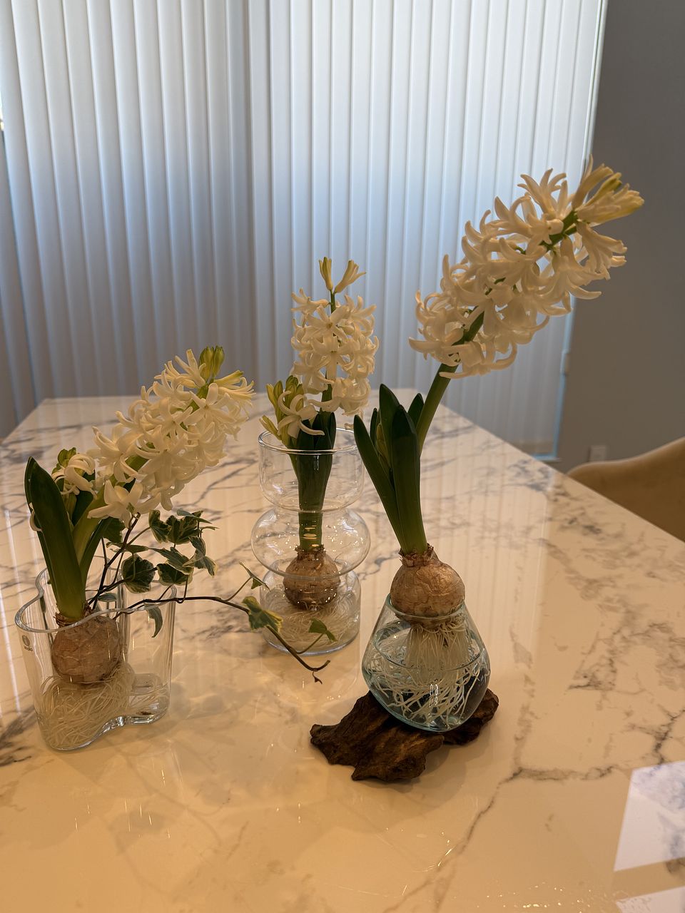 以前お願いしお届けいただいたヒヤシンスが満開になったのでまたお願いしました、また綺麗なお花を咲かせてくれるといいな❣️
