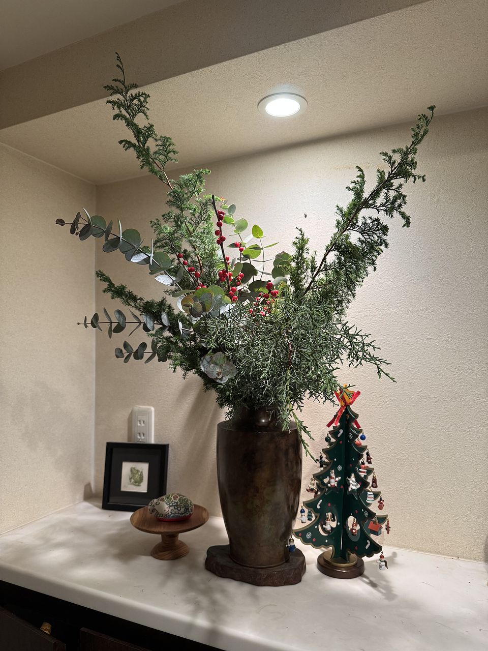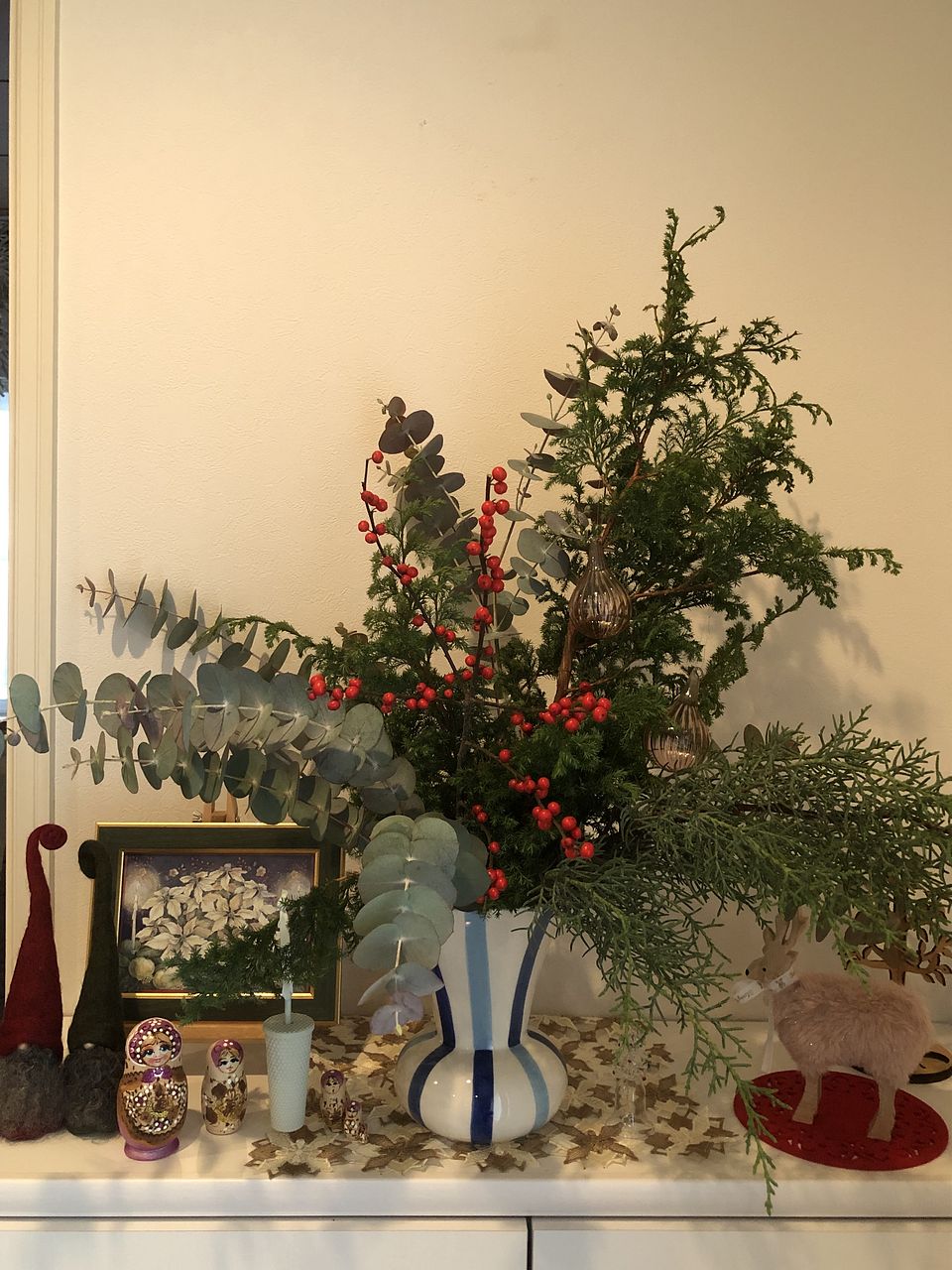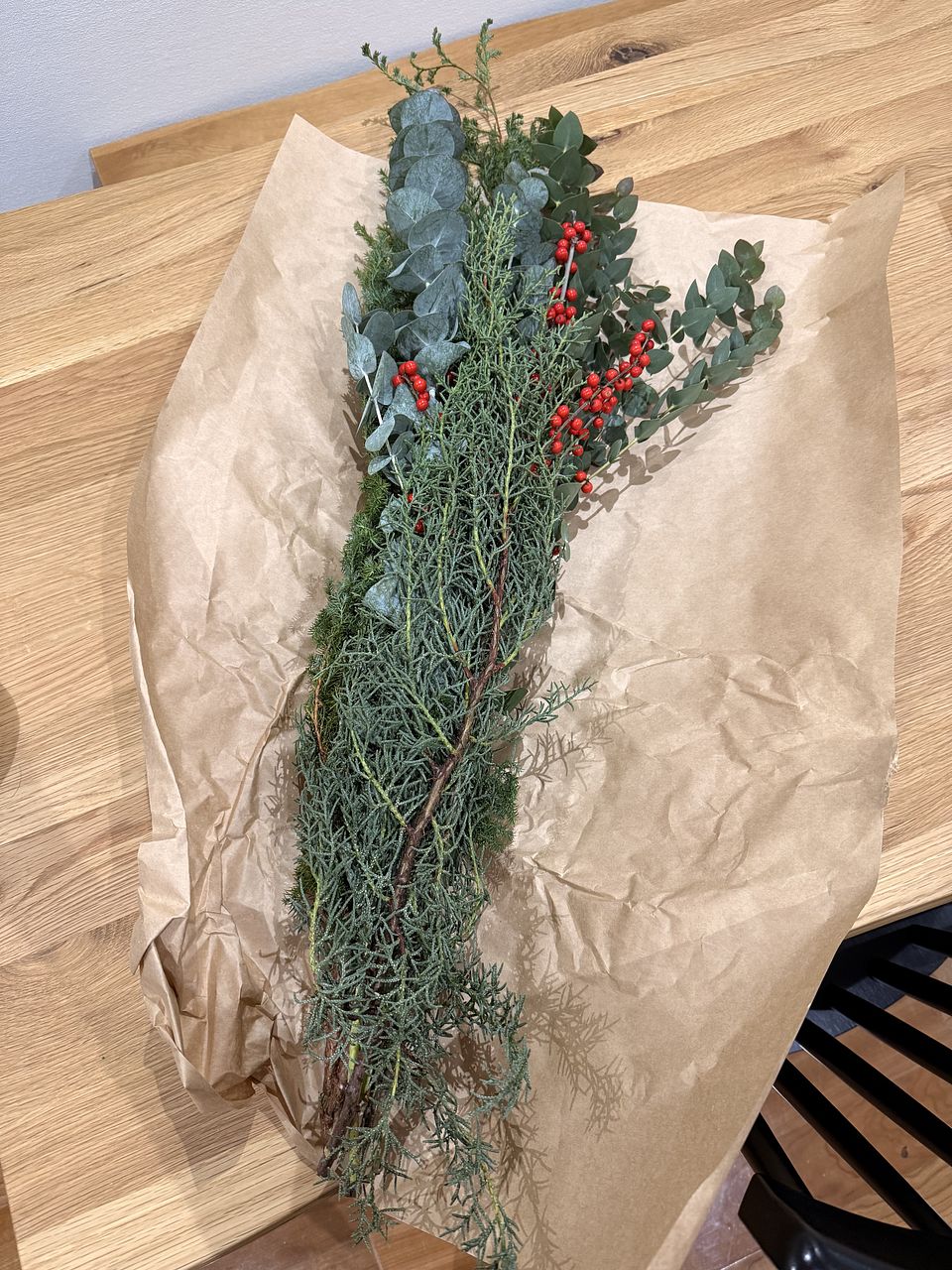 箱を開けた瞬間に良い香り! ボリュームあひ花瓶にサッといけるだけであっという間にお部屋がクリスマス雰囲気いっぱいになりました✨
