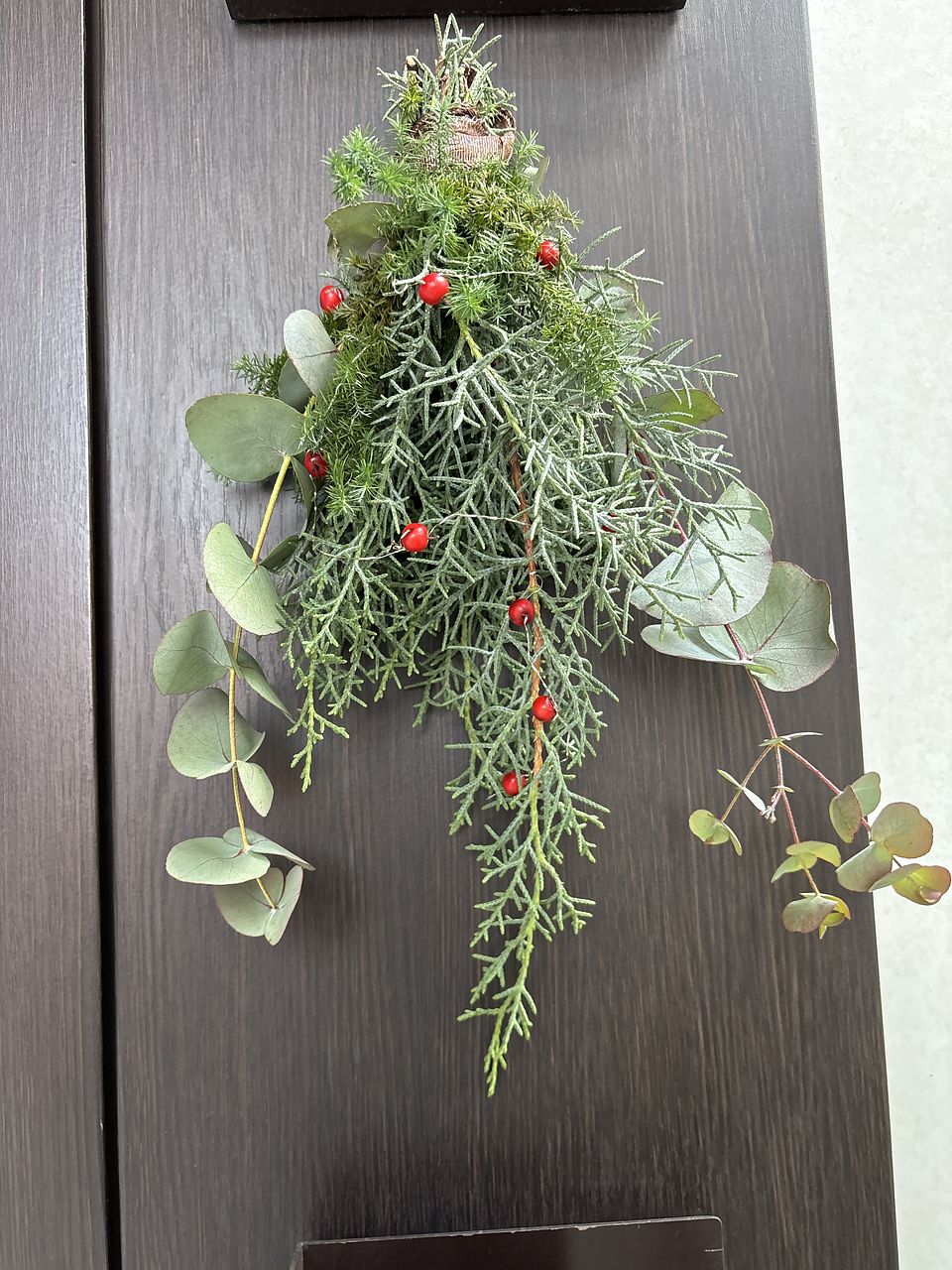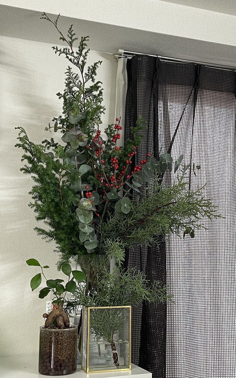 ボリュームがあり、いくつもアレンジができました!玄関にはロングサイズを使ったのでステキなクリスマスのおもてなしになりました。