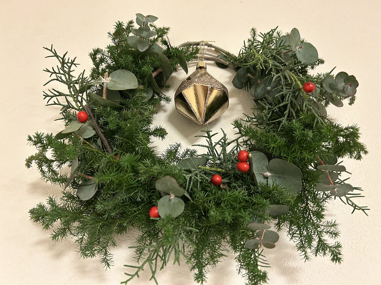 たっぷりボリュームがあり期待以上です。 さっそくリースを作ってみました。 グリーンだけど、それだけでクリスマスの 気分になれます。