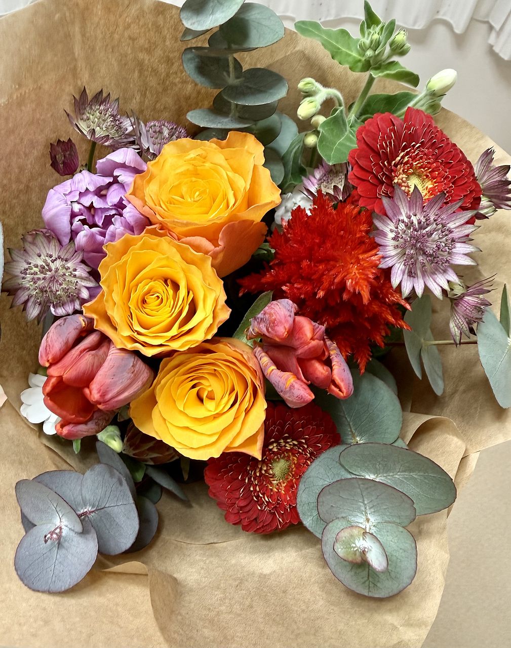 いつもは、ブーケで残念な思いをすることが多かったですが、今回、初めてフローリストさんのブーケを購入して、感動しました🥺ボリューム満点、お花もめっちゃめっちゃ綺麗で可愛くて、素敵なブーケでした😍お値段は高めですが、思い切って購入して良かったです♡チューリップは、何種類か入っているので、どんなチューリップが咲くのが楽しみです😊