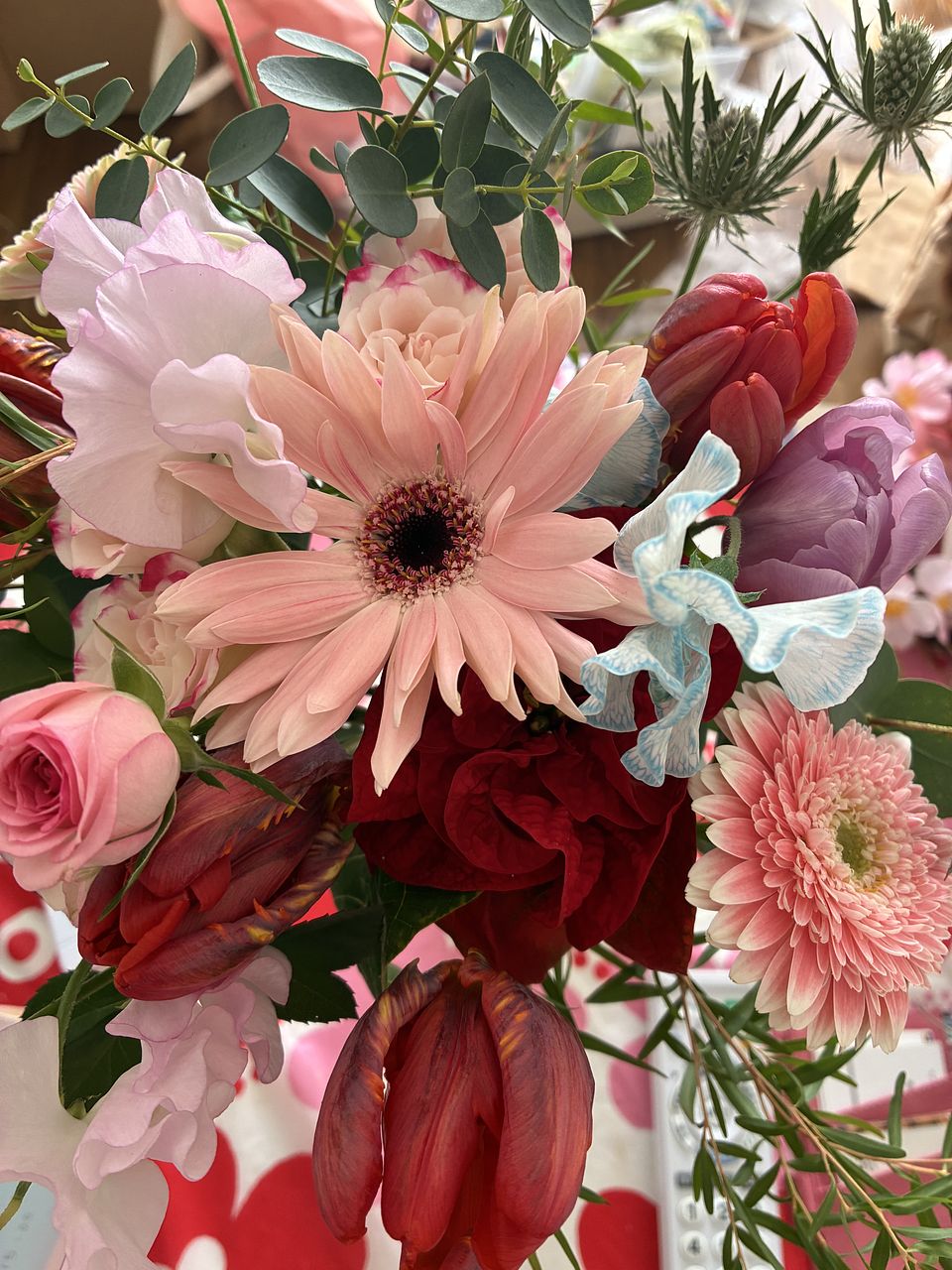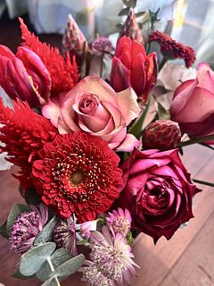 赤を中心にステキなお花が届きました✨ ありがとうございます😊