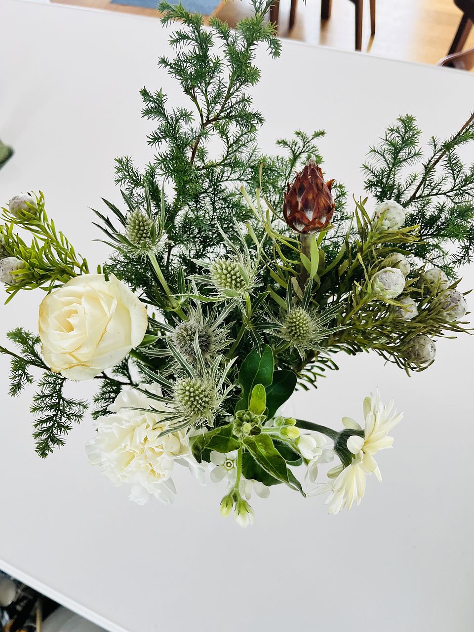 雪が舞う季節にぴったりの、穏やかな雰囲気のブーケ。