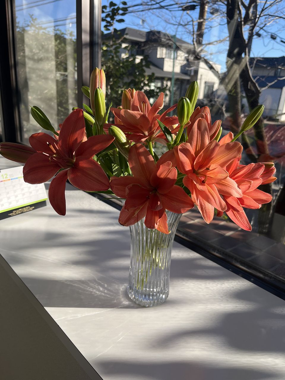 見た目的にはそこまで好みではないかなと思いつつ、4ー5日留守をするので持ちの良いユリにしてみました。帰ったら全く、枯れてもなくそのまま咲いていてとても嬉しかったです♪