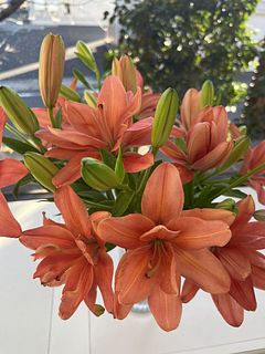 到着した時点ではまだ咲いていなかったのですが、たくさん開いてきました。 この百合は初めて見ました。 とても素敵でーす。 百合もいろんな種類があるんですね❣️