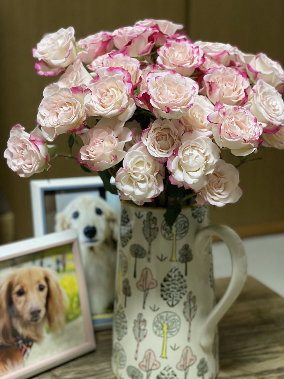 とってもフレッシュでプリンセス感のある可愛い薔薇が届きました💓 一本につき5つか6つ、多いのでは7つもお花がついていてボリューミーです。 4本はまとめてリビングに、7つ花がついた一本は寝室に飾りました。 前回注文した薔薇は海外産のもので届いたときにはかなり元気がなく、数日で枯れてしまいましたがこちらは持ちが良さそうです! はるばる空輸されたお花もそれはそれで情緖がありますが、やはりこれからは国内産のものを注文しようと思いました。