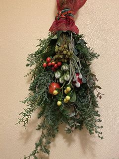 玄関入ると香りがしてクリスマスに向かって 気分を盛り上げてくれそうです。 かなりボリュームがあり、実ものがいろいろで 楽しい感じです♪