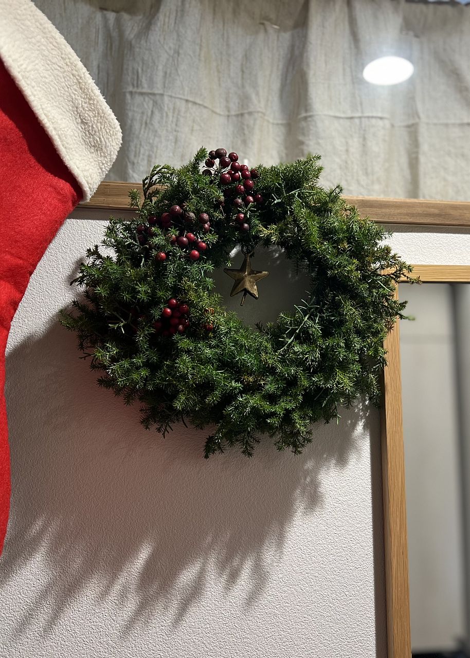 初めてリースを作りました! 自分のセンスの無さが残念でしたが、楽しく作ることができて満足です。