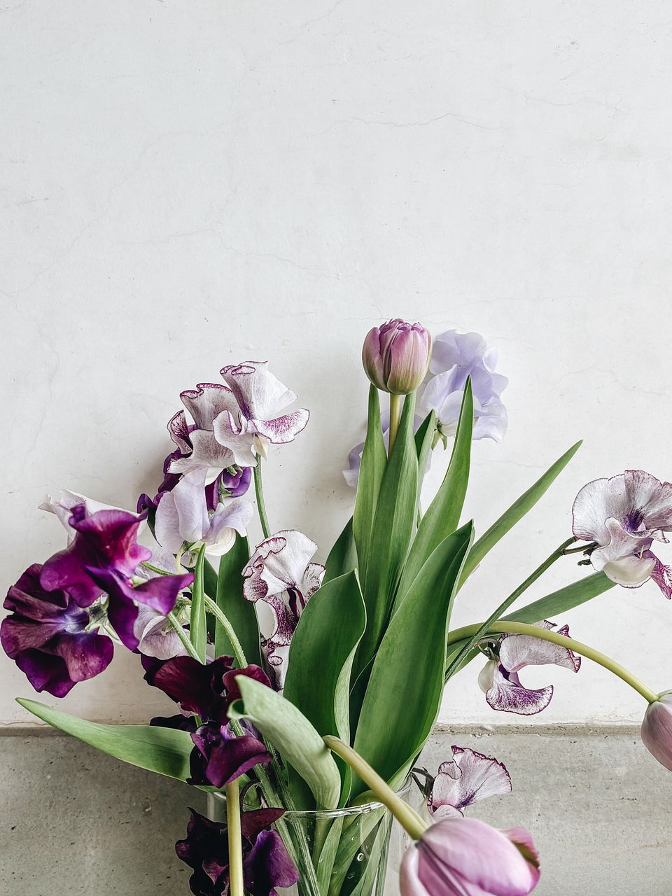 チューリップの色は商品ページみたいに濃い紫ではないけれどきれいな薄い紫色で