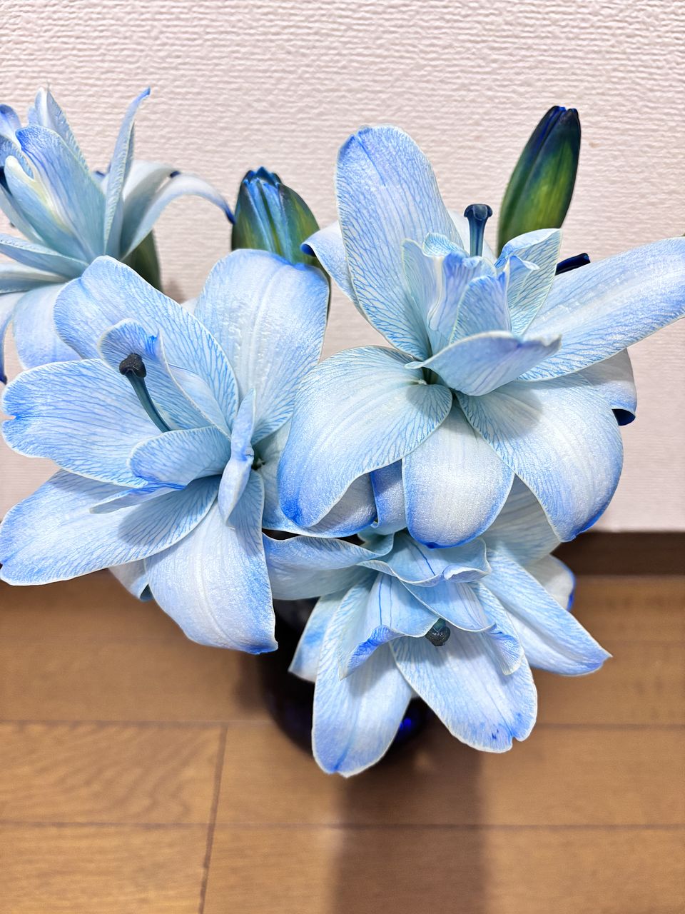 青いゆりが1番楽しみにしていたお花だったので残念です。昨今の暑すぎる夏はお花の宅配には向かないかもしれませんね。