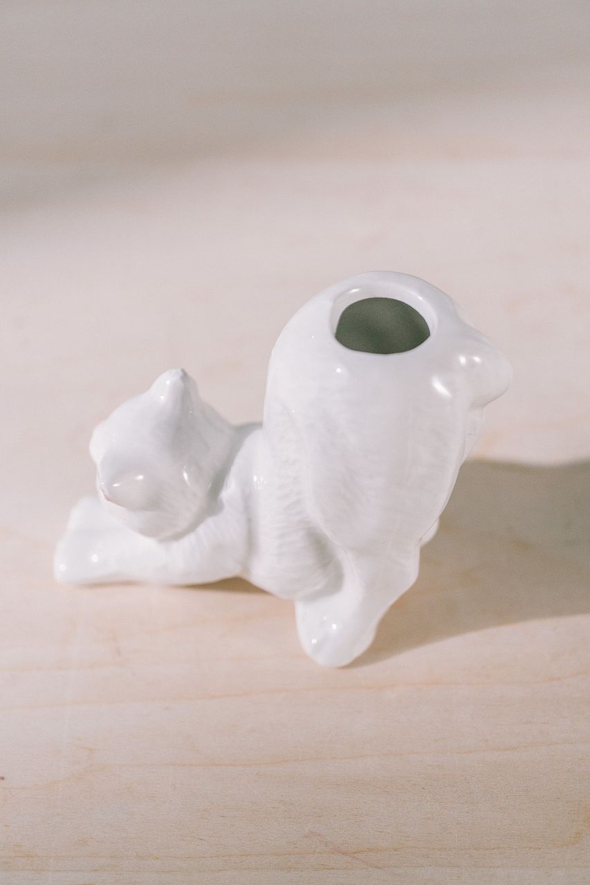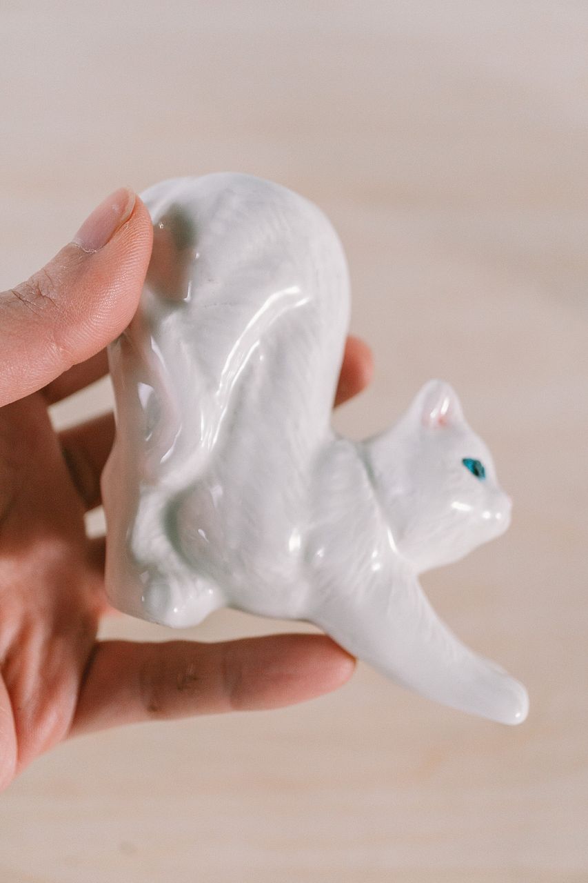ネコ好きさん必見!前足をぐーんと伸ばした姿がなんとも愛らしい、美人さんな白ネコちゃんの一輪挿しが登場🤍