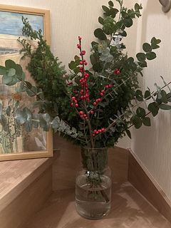 今回セレクトした枝物は、赤い実がかわいい「ウィンターベリー」、ロングサイズの「ひむろ杉」「ブルーアイス」「ユーカリ」と盛りだくさん🌲クリスマスオーナメントを吊るせばお部屋が一気にホリデームードに✨🎁