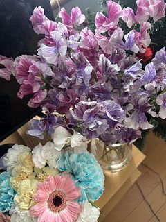 とにかく 今まで見たことのない色柄のスイトピーでした。色々あるんですねー ピンクや紫が可愛らしくて 華やかです。