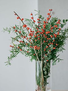 そのままスワッグにするのもおすすめです🥰 お届け例 つぶつぶの赤い実がかわいいウィンターベリー。 レモンティーツリーは葉っぱをこすってみて。いい香りがします🌿 ユーカリの香りも楽しんで。 ウィンターベリーの実がしわよっていることも。気になる場合は取り除いて。 杉は時期的(シーズン終盤のため)に黄色くなっているものをお届けする場合がございます。