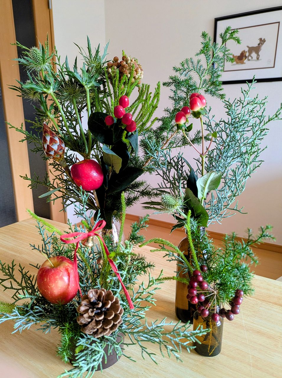 期待以上のボリュームと華やかさで、ミニブーケを作っても余ってしまうほど。お部屋いっぱいに良い香りが広がって、クリスマスムード満点です🎄