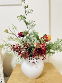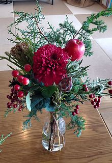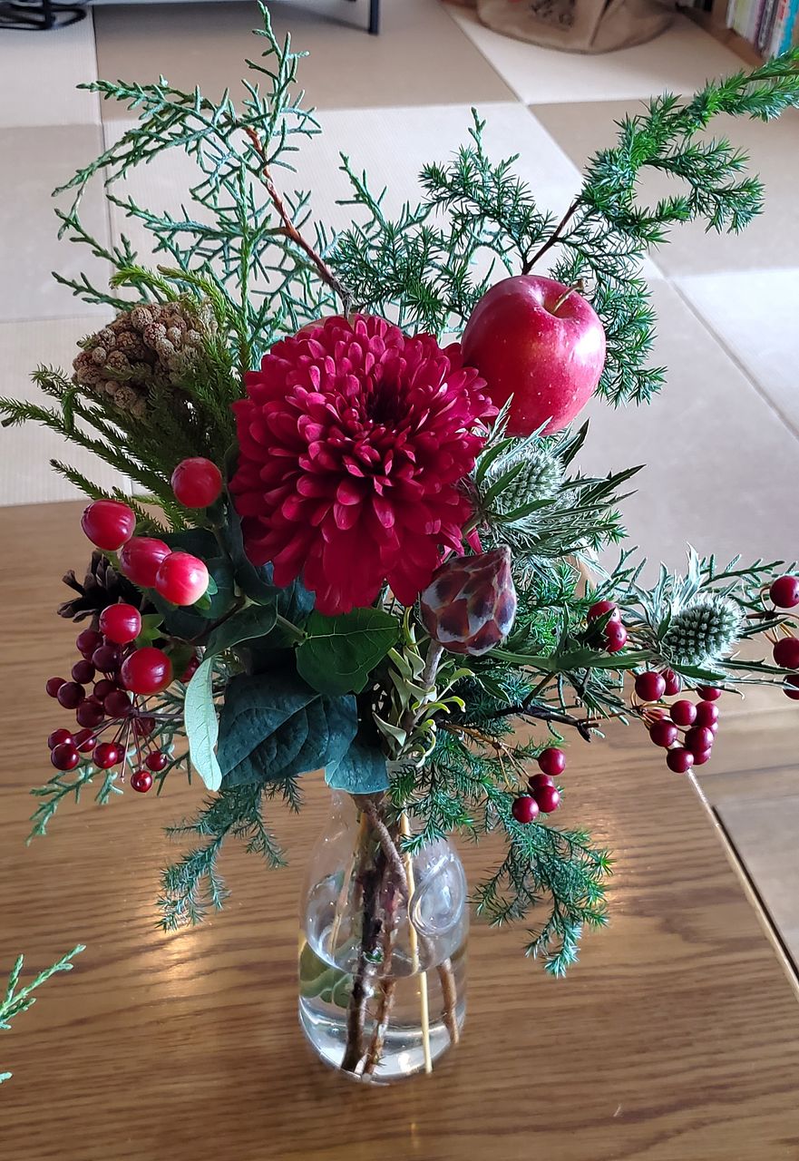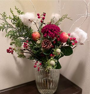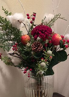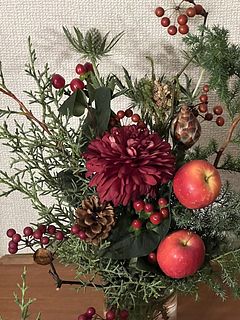 クリスマスらしい赤い花や実物、想像通りの花材が丁寧な梱包で届きました。 コットンフラワーと雲龍柳を加えて飾りました。 花材の種類も鮮度も満足ですが、山帰来の枝が短い点が少し残念でした。 クリスマス間近で花材が高騰する時期にこの価格で届けていただけるのは大変ありがたいです。また利用させていただきます。