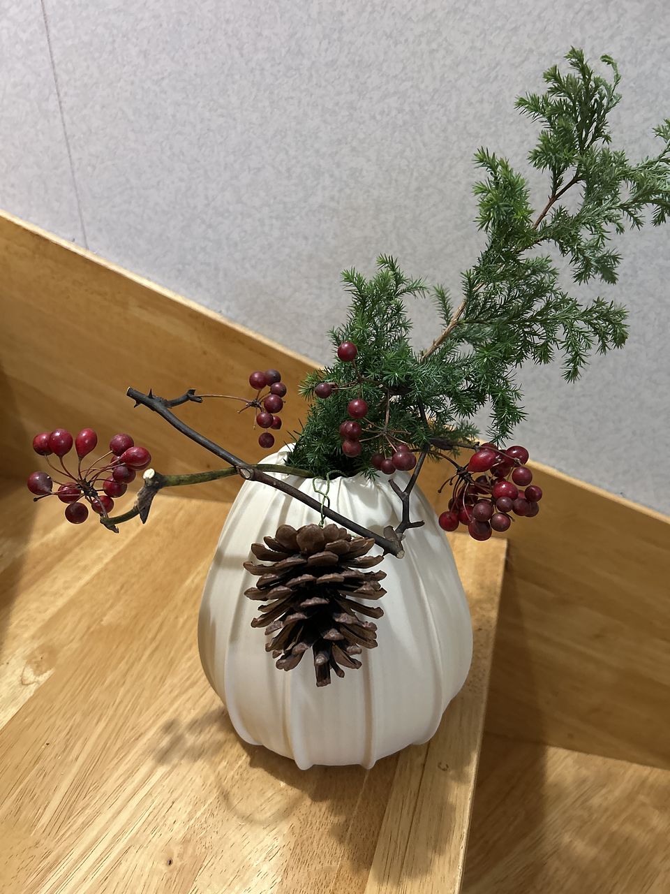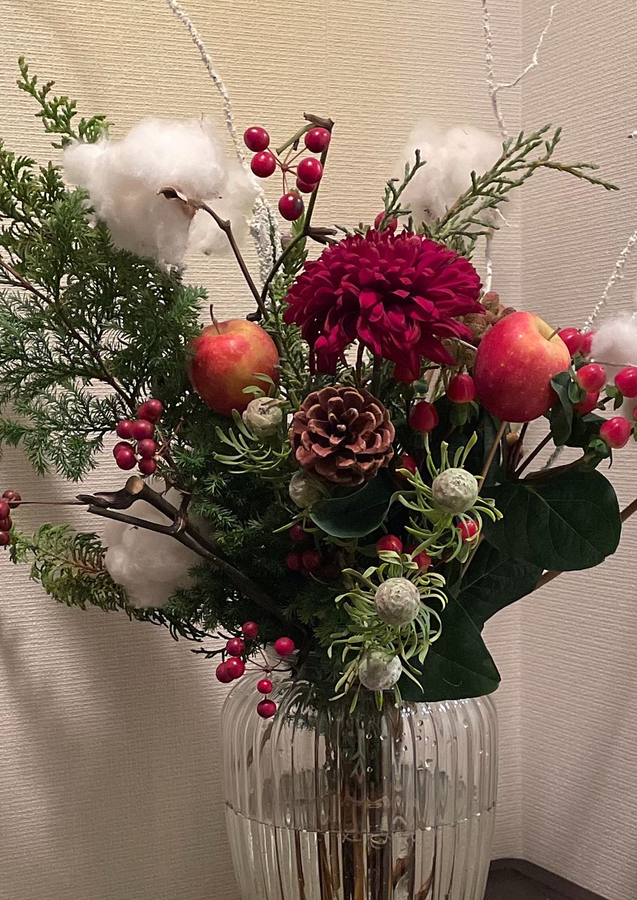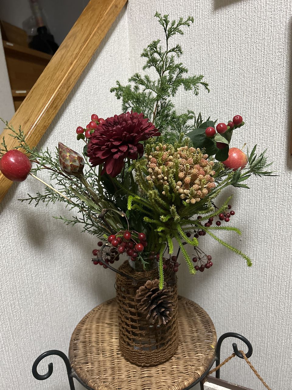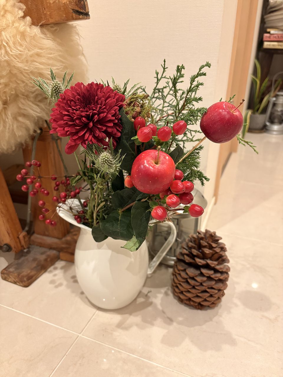 我が家にはクリスマスツリーがないため、お花でクリスマス雰囲気を出してみました🎄大変満足しています🤶🏻❤️結構フレッシュな香りが漂うので、食卓より玄関近くに飾ったほうがいいかなと思います