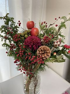 一気にクリスマス気分になれる素敵なブーケでした。 量もとても多く、2つに分けて飾りました。ありがとうございました。