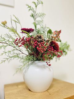 前回、初めてお花のブーケを注文。今回で2回目です。 グリーンと赤のバランスがほど良く、お部屋に飾ると一気にクリスマス感が出ました。 シーズン毎に色んなお花が出てくるのでついつい又注文したくなります。 お正月のブーケも検討中です!