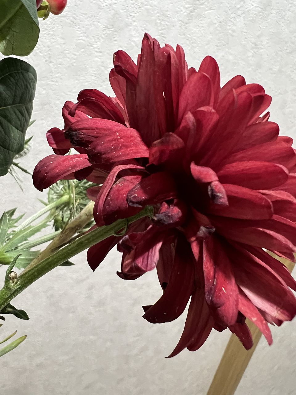 この季節に欠かせない赤が入り、緑のボリュームに負けない感じです。 自分でブーケにしたのでちょっと不格好なのがまた可愛いです♥