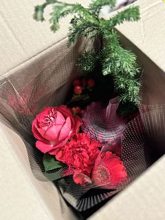 写真と異なる場合があることは理解していましたが、実際に届いたものは花材の比率や色合いが大きく異なり、別の商品を注文したかと思うほど印象が違いました。