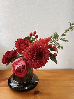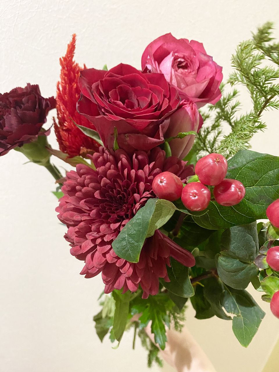 グリーンと花のバランスや全体の色味を、もう少しイメージ写真に近づけていただくか、好みが分かれる花材については避ける・事前にわかる形にすると、より満足度が高くなるのではと思います。