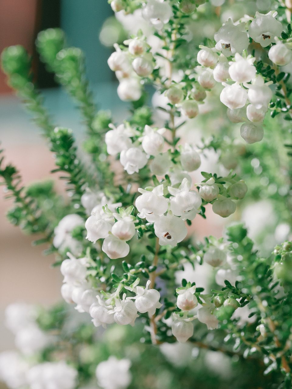 まるで雪の積もったツリーのよう🎄可憐なすずらんのような花を咲かせるツツジ科の「スズランエリカ」。花言葉は「幸運」「幸せな愛」。