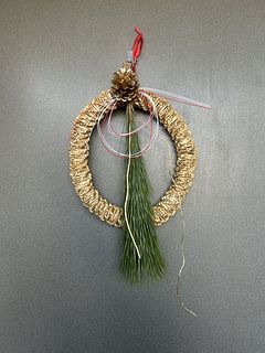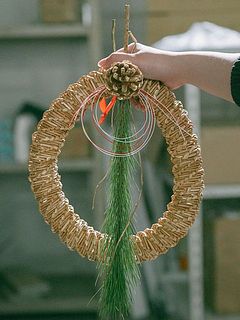 ストロー素材のナチュラルなリースに、松や水引をあしらった「ストローリースでつくるお正月飾りキット」をご用意しました。