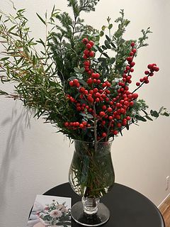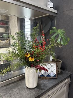 皆さんの投稿を見て私も是非トライしてみたいとタイミング良く購入出来ました。赤い粒が結構落下していたのが悲しいですが包装、梱包状仕方ないですね。枝の形状により花瓶の選択が難しいですが生けるのも楽しいです。このような生花があるとお部屋の雰囲気が変わってとても嬉しいです。次回はまた別のお花にトライしたいと思います。