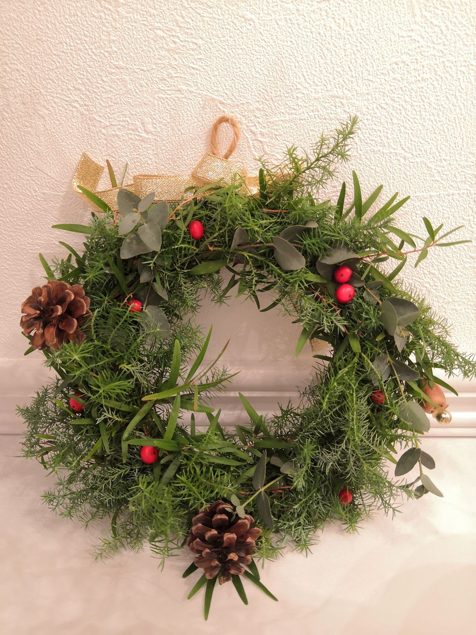 とっても素敵でした! 前回のもみの木でリースを作ったのでそちらにも少しグリーンを足しました♪