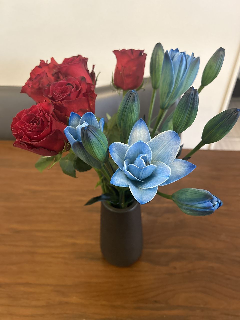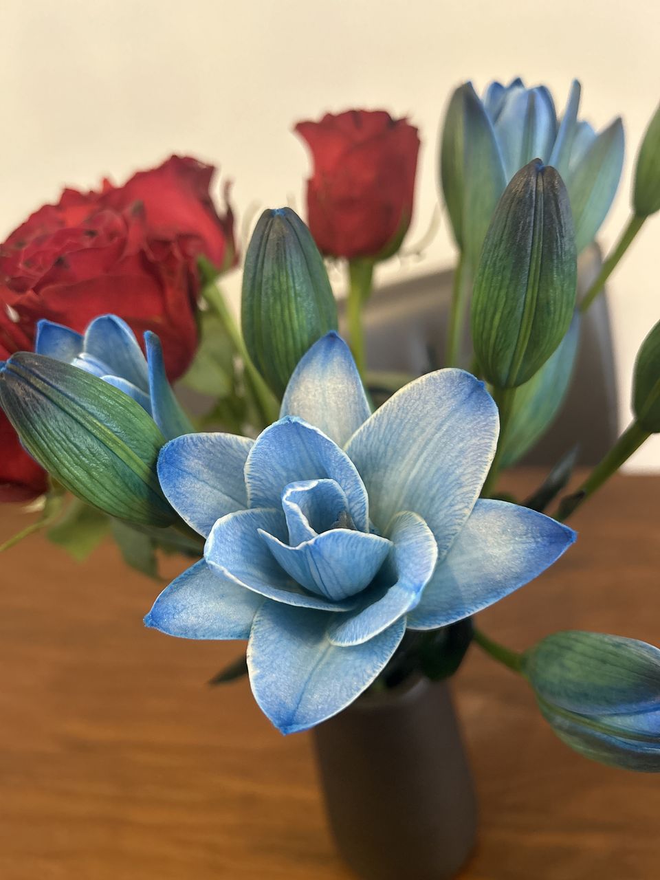 青いゆりが1番楽しみにしていたお花だったので残念です。昨今の暑すぎる夏はお花の宅配には向かないかもしれませんね。