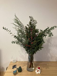今回セレクトした枝物は、赤い実がかわいい「ウィンターベリー」、ロングサイズの「ひむろ杉」「ブルーアイス」「ユーカリ」と盛りだくさん🌲クリスマスオーナメントを吊るせばお部屋が一気にホリデームードに✨🎁