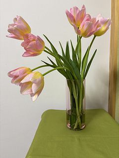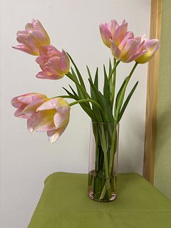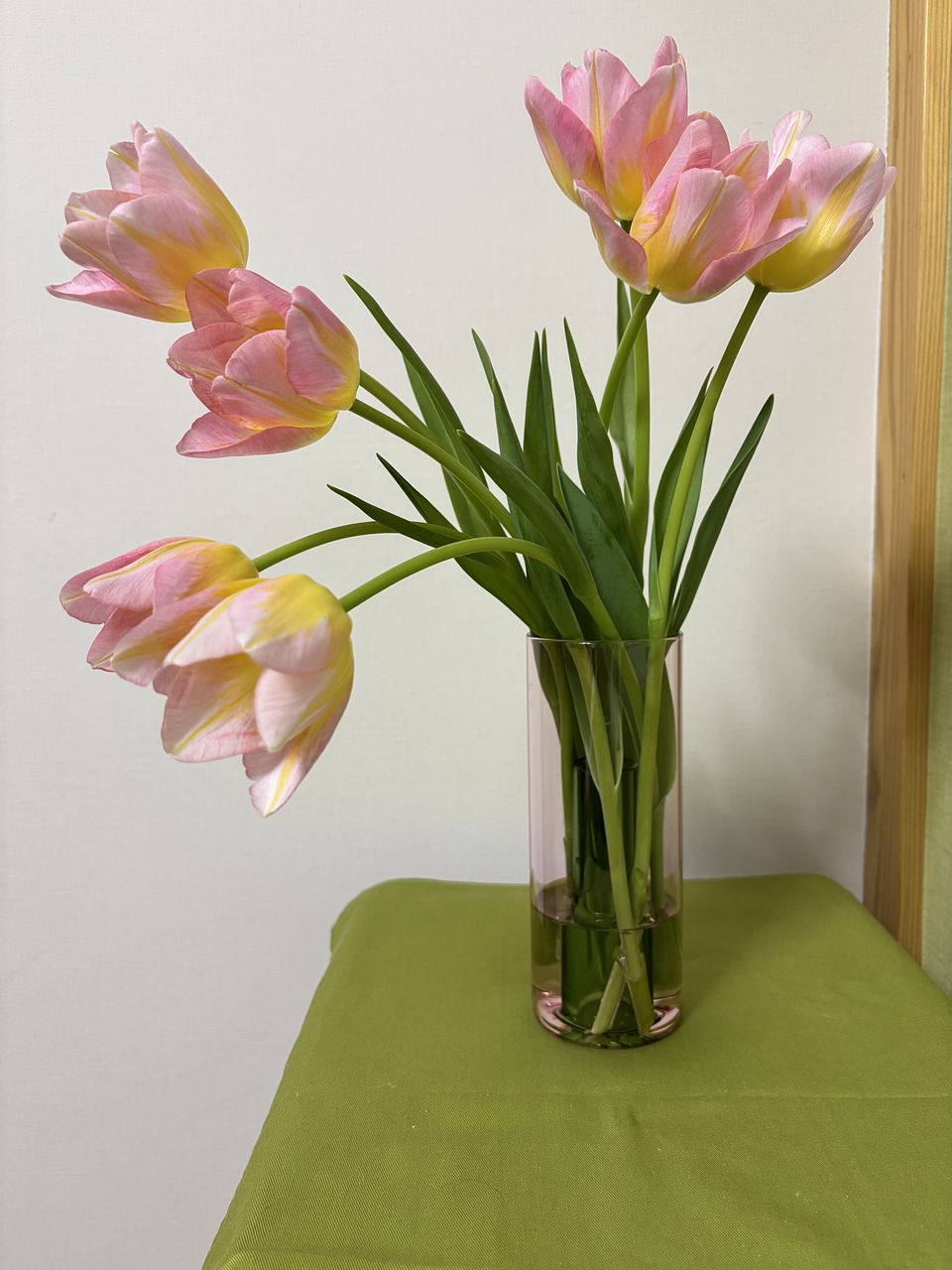 ピンクと黄色みがかっていてとてもかわいいです。とても新鮮で一足先に春を感じます。一緒に買ったリバーシブルの花瓶に生けたらとても合うしいい感じ〜 花瓶のピンクとグリーンかわいくて買って正解でした❣️