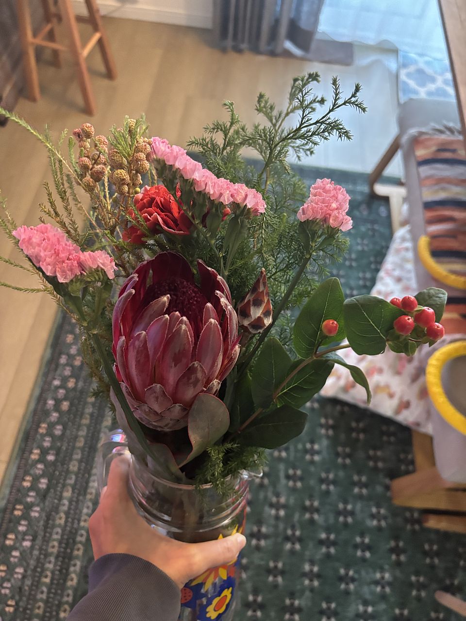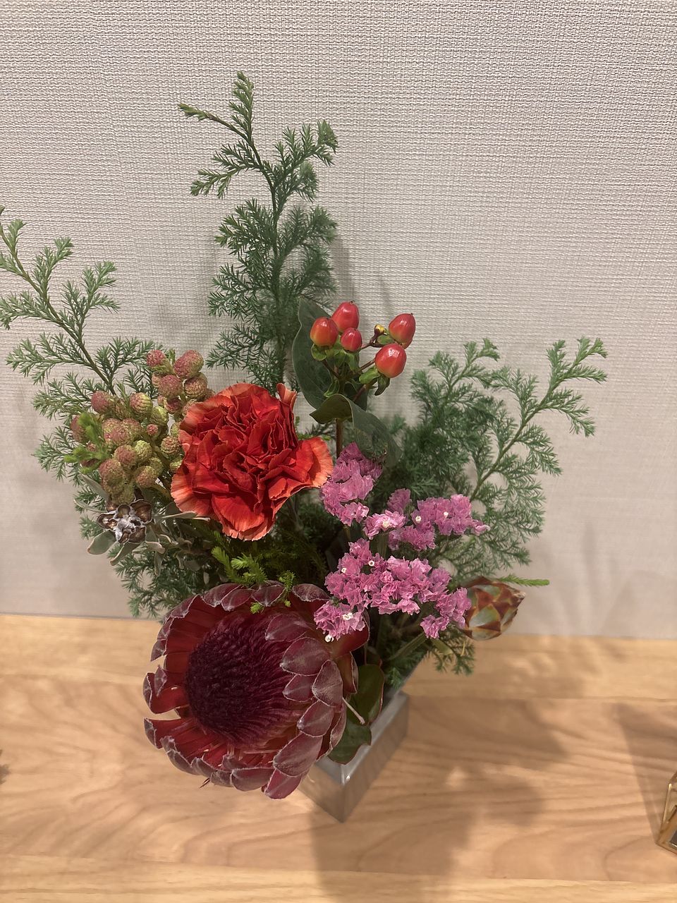 プロテアが綺麗な赤色でとても可愛かった。ボリュームもあって満足です🤭