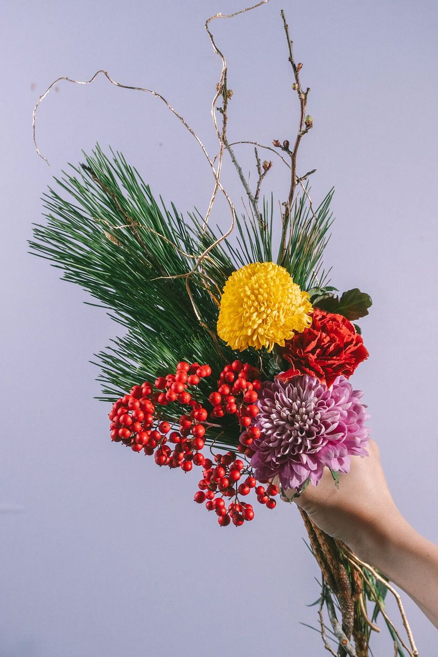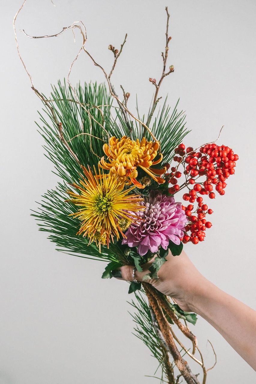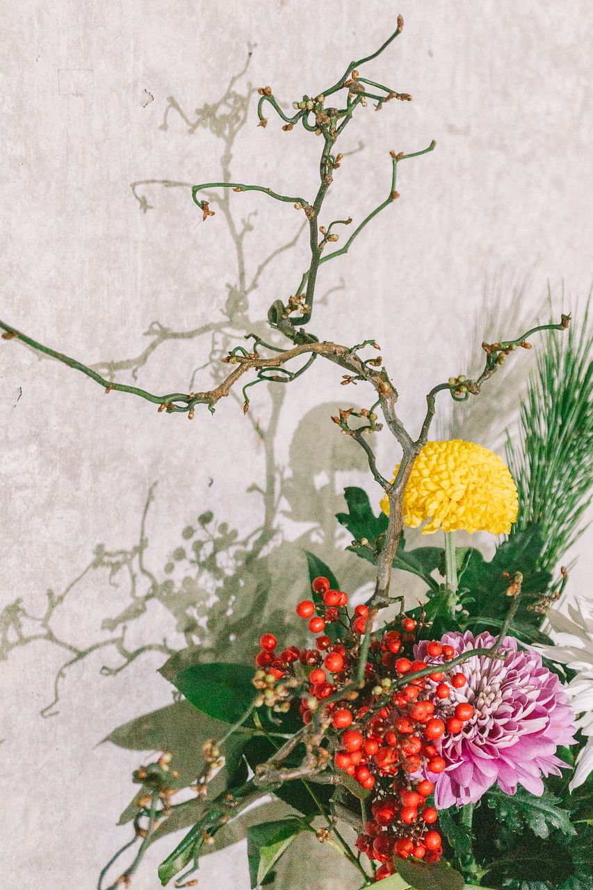 菊や実もの、松など、の花材を組み合わせは新年を迎えるのにぴったり!ぜひ飾ってみてね。