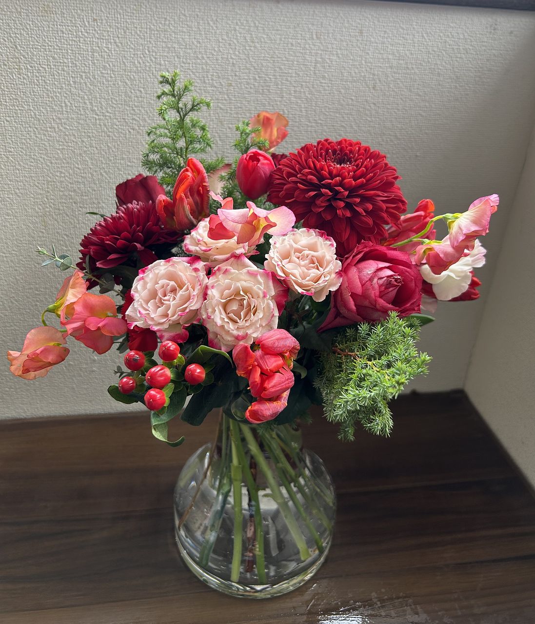 同じ花材でも束ね方や組み合わせでこんなにも表情が変わります👀✨軽やかな雰囲気や、冬の空気をそのまま束ねたようなブーケです💞💐