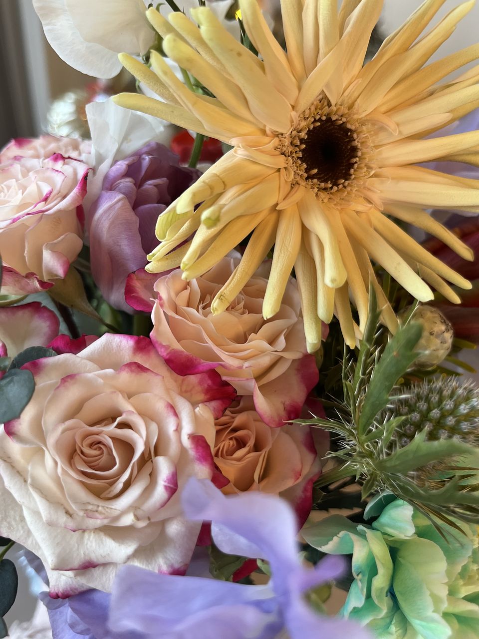 自分では選ばないビタミンカラーの薔薇なども入っていて楽しいです。 たくさんの種類の花々で心が躍ります。 ありがとうございました。