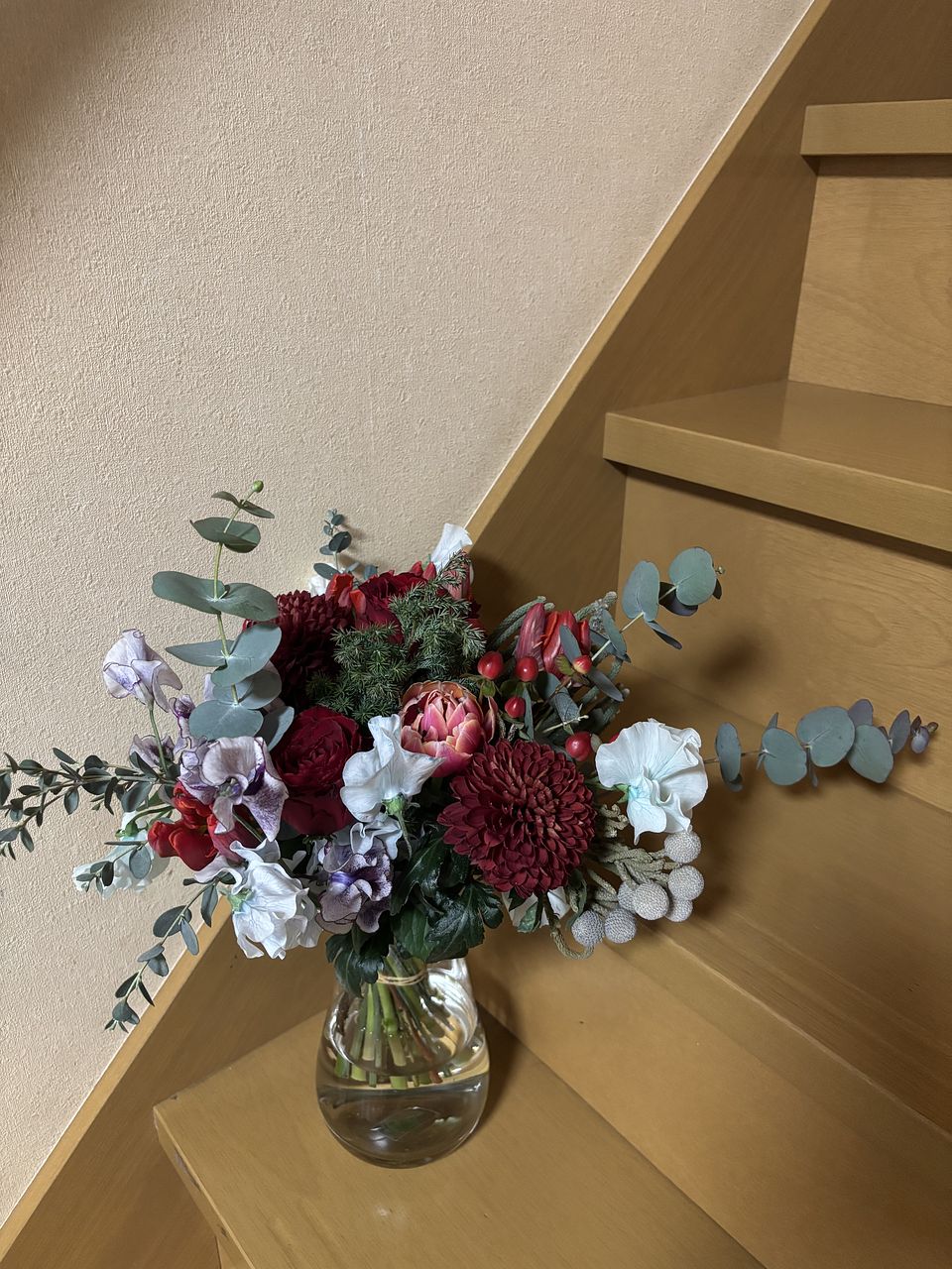 赤を中心にステキなお花が届きました✨ ありがとうございます😊