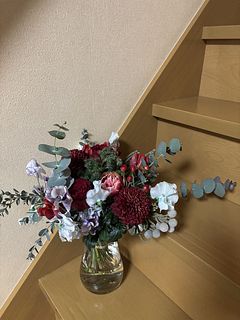 先月に続き今回はこちらのお花を購入しました。柔らかな色合いでボリュームがあってとても素敵なブーケでした。玄関に飾っていますがお花があると華やかになっていいですね。