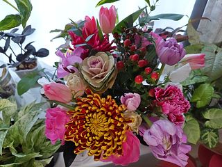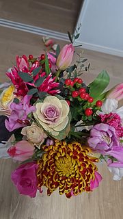 開けるまでのお楽しみにハマっています💐 葉牡丹や菊、お正月感もあり大満足です 毎回素敵なブーケをありがとうございます✨